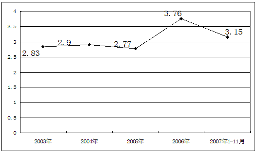 2003-2007年1至11月制帽市场成本费用利润率 单位:%