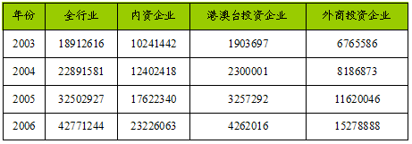 2003年-2006年医疗器械 行业 不同所有制企业销售收入比较