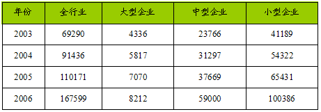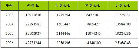 2003年-2006年医疗器械 行业 不同规模企业总销售收入 分析