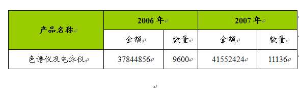 2006-2007年色谱仪及电泳仪进口数据 单位:千元