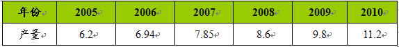 2005-2010年中国气体在线 分析 仪器市场需求及未来预测 单位:亿美元