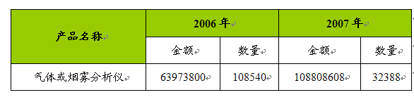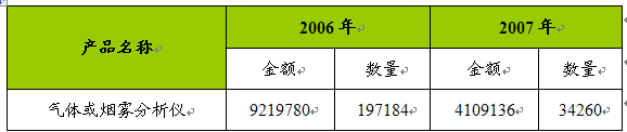 第六节 气体在线 分析 仪器进出口量值 分析
