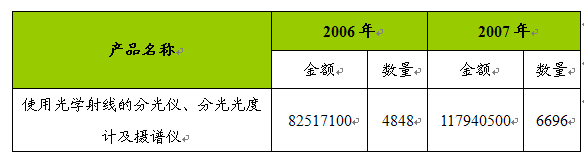 2006-2007年使用光学射线的分光仪、分光光度计及摄谱仪出口数据 单位:千元