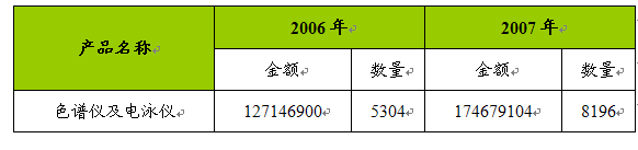 2006-2007年色谱仪及电泳仪出口数据 单位:千元