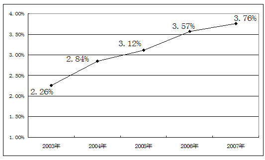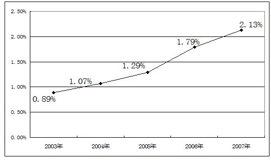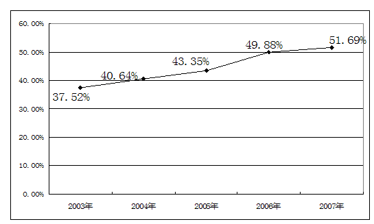 2003-2007年华北市场市场集中度变化 分析 单位:%