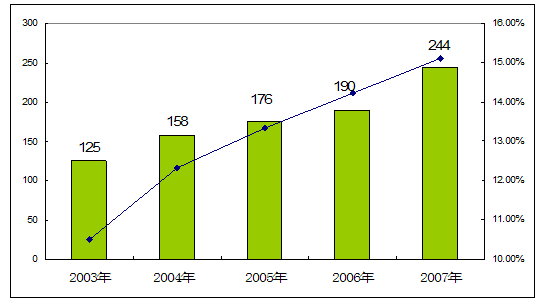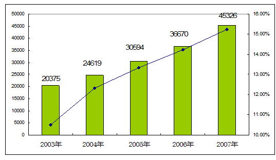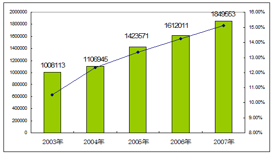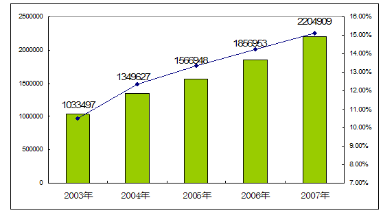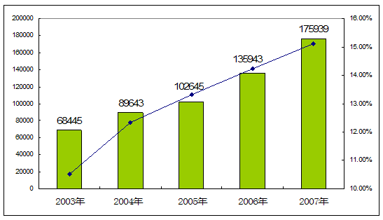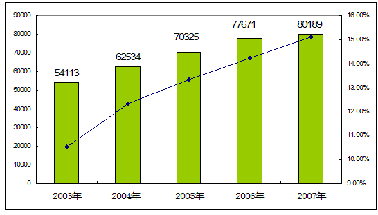 2003-2007年中南市场工业产值变化 分析 单位:千元