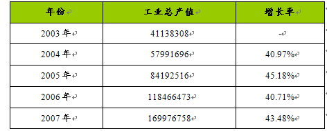2003年—2007年我国船舶制造业 行业 规模 分析 单位:千元