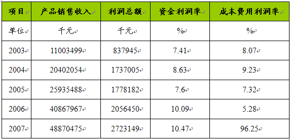 2003年-2007年气体压缩机制造企业盈利能力 分析