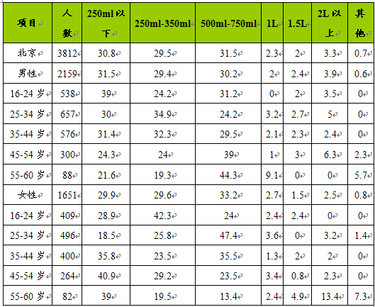 各年龄阶层最喜欢饮用的包装形式 单位:千人