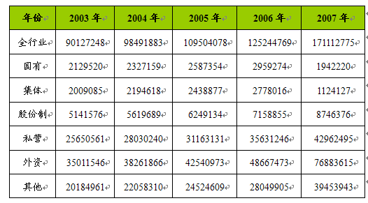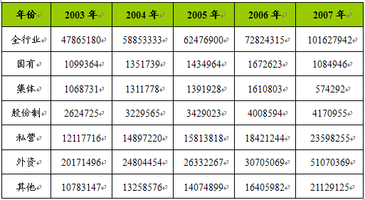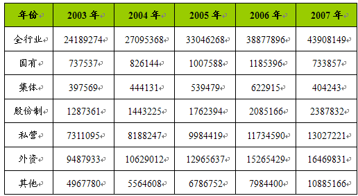 2003年-2007年食用植物油加工业不同所有制企业总资产比较 分析 单位:千元