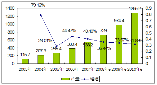 2003-2010年我国移动式螺杆空压机产品产量 分析 及预测