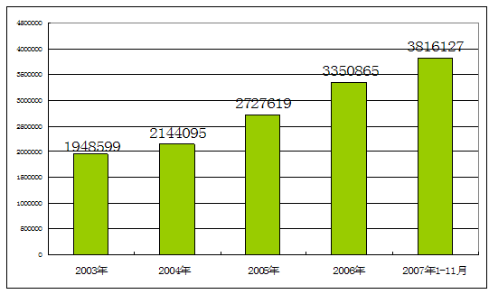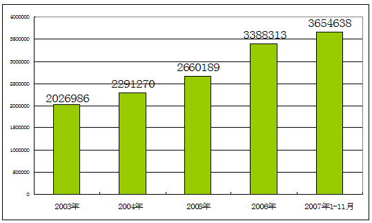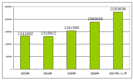 2003-2007年1至11月制帽市场总资产 单位:千元
