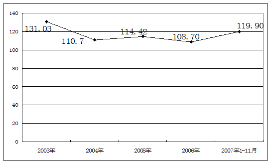 2003-2007年1至11月制帽市场固定资产 单位:千元