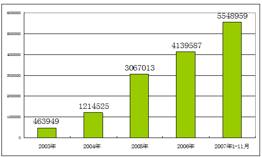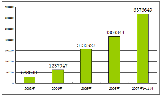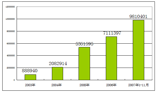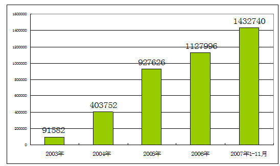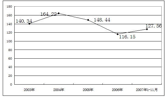 2003-2007年1至11月助动自行车制造市场固定资产 单位:千元