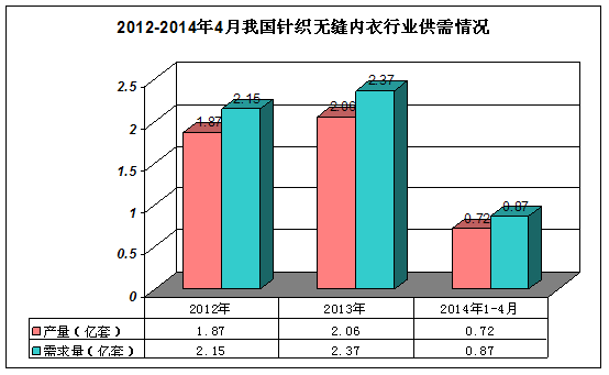 图表192012-2014年4月我国针织无缝内衣 行业 供需情况