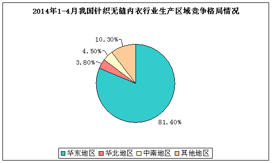 图表212014年1-4月我国针织无缝内衣 行业 生产区域竞争格局情况