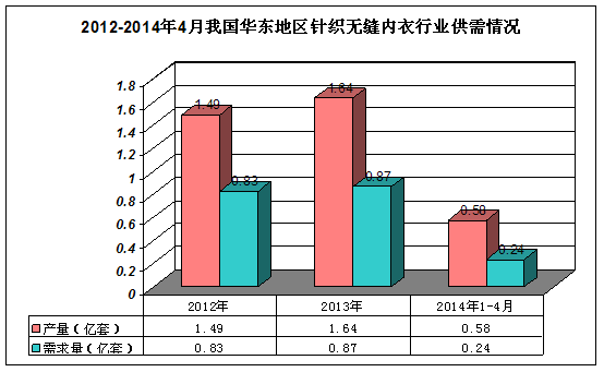 图表 222012-2014年4月我国华东地区针织无缝内衣 行业 供需情况