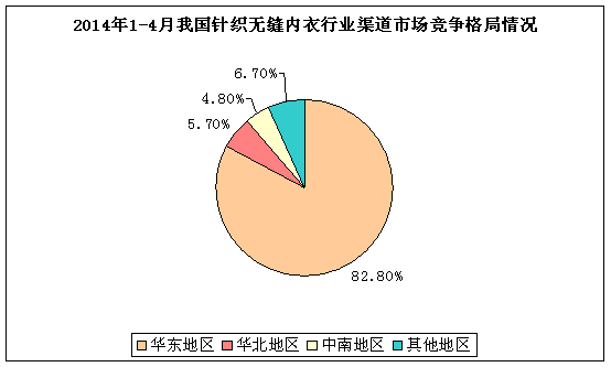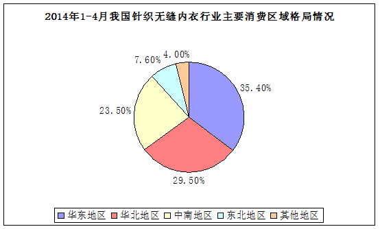图表282014年1-4月我国针织无缝内衣 行业 主要消费区域格局情况