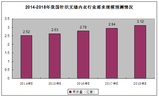 图表292014-2018年我国针织无缝内衣 行业 需求规模预测情况