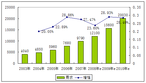 2003-2010年我国整组道岔系列产品需求 分析 及预测图