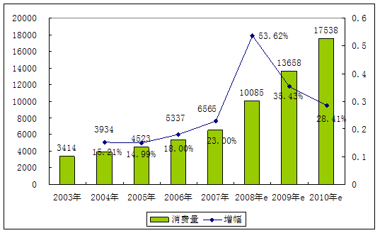 2003-2010年我国整组道岔系列消费状况 分析 及预测表