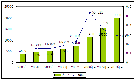2003-2010年我国整组道岔系列产品产量 分析 及预测图