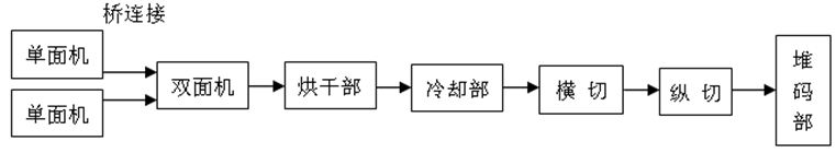 瓦楞原纸通过上下瓦楞辊对压成型,经上糊辊上浆糊,面纸与成型的瓦楞纸在压力辊与上瓦楞辊切线处贴合成二层瓦楞纸板,再经迁引皮带上天桥到双面机部位与其它单瓦楞纸板、面纸复合成型。