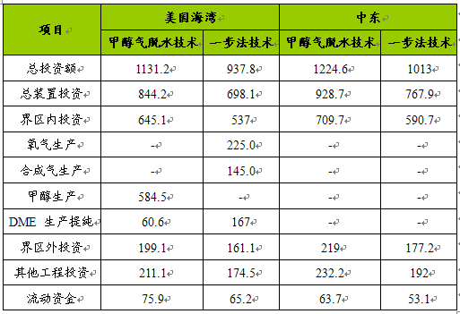 一、天然气法二甲醚(250万吨/年)投资和生产成本对比 分析