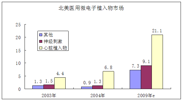 美国不仅是世界上医疗器材消费最多的国家,同时也是最大的医疗器材供应国,因为事实上全球将近半数的医疗器材,皆来自于美国的医疗器材制造商。根据2003年Frost&Sullivan的 研究 报告指出,2002年美国医疗器材产业营收总值约为576亿美元,并且预估至2005年更将达到745.1亿美元。此外由于2003年新一波潜力产品如药物涂层支架(drugelutingstents,DES)、心律同步治疗系统(CardiacResynchronizationTherapy,CRT)等之出现,以及美国医疗器材厂商间频繁之并购活动,都将提供整体产业更广大的市场与发展机会。