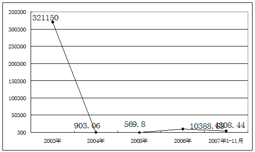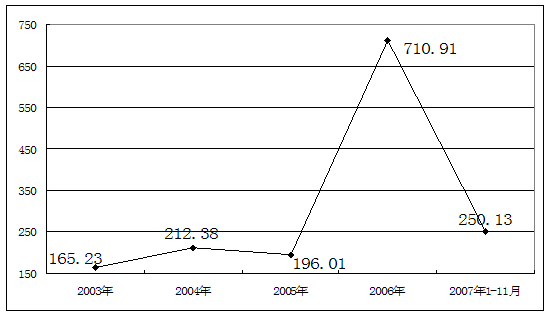 2003-2007年1至11月制帽市场人均销售率最好水平 单位:元