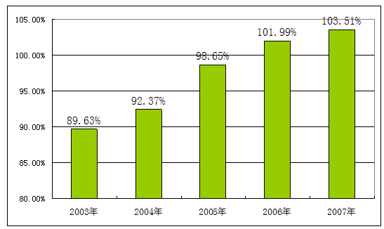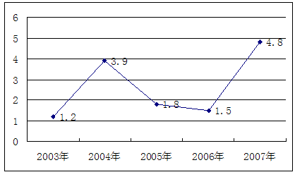 2003年-2007年居民消费价格涨跌幅度 单位:%