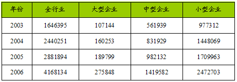 2003年-2006年医疗器械 行业 不同规模企业利润总额