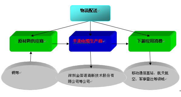 半柔电缆 行业 的产业链结构 分析 :上游原材料供应商,中游半柔电缆生产商,下游半柔电缆应用商,此外还有贯穿产业链的物流配送厂家、销售厂家等。