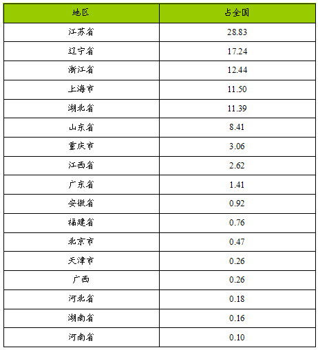 第二节 2006年船用配套设备制造 行业 销售收入地区分布状况