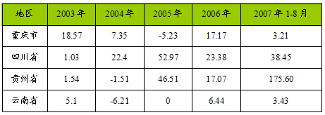 第五节 西南地区项目投资状况