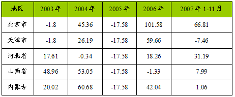 第一节 华北地区项目投资状况