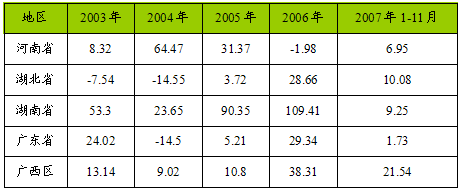 第四节 中南地区项目投资状况