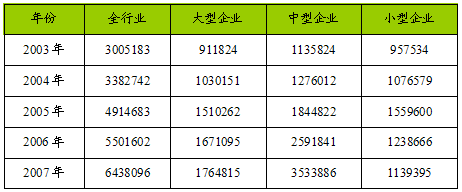 2003-2007年液体乳及乳制品制造市场不同规模主要企业利润总额
