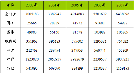 2003-2007年液体乳及乳制品制造市场不同所有制主要企业利润总额