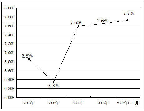 第六节 2003-2007年液体乳及乳制品制造市场产值利税率 分析