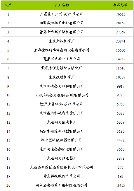 第三节 2006年船用配套设备制造 行业 利润总额前20位企业对比