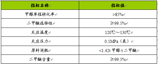阳离子型液体催化剂甲醇液相脱水制二甲醚的工艺指标如下: