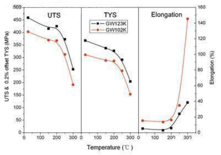 Mg-Gd-Y-Zr 系列合金力学性能与温度的关系