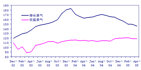 总用钢量中比例超过50%的建筑业受到房地产业投资逐渐放缓的影响。05年1-4月房地产业完成投资3405亿元,同比增长26.7%,较去年同期增幅回落9个百分点;商品房竣工面积5998万平方米,同比增加13%,低于去年同期24%的增幅;销售面积7410万平方米,同比增加16%,而去年同期增幅为31%。5月份商品房价格和投资增幅都进一步趋缓。中央对房地产业的调控方针是“稳定增长”,防止房地产价格的“大起大落”。从上述运行数据来看,调控已初见成效。尽管近来市场上有声音为房地产业松绑,但中央从维持政策延续性的立场出发,预计短期内房地产