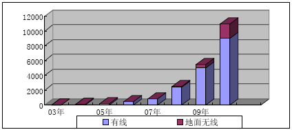 2008-2010年,数字电视出现“井喷”。数字化设备市场热点以地面无线广播系统为主。