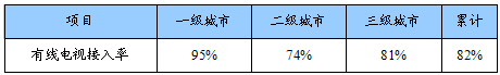 目前城镇居民消费能力比较高,地域集中,对数字电视的承受能力相对较强。国内城镇居民电视接入方式比较类似美国,有线程度较高,所以目前接入数字电视可能性相对较大有线方式。