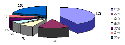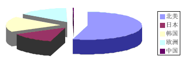 数字电视生产地区的分布,目前仍以北美为主;韩国目前生产规模和市场份额增长很快;日本由于掌握显示器件的高端技术,预计2006年以后日本的发展规模将仅次于北美。数字电视机生产2002年~2006年之间预计年均增长38%。