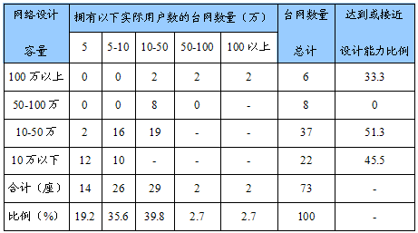 城市有线电视网设计容量50万户以下设计容量的网络占绝对多数(累加80.8%),表明在大、中、小城市有线电视的发展及普及程度很高。