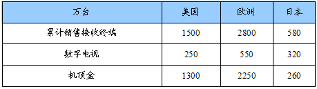目前各地的数字电视运营商制定的节目包平均价格为30.29元/月。由于各地运营商制定数字电视收费走向难以预测,仅按照目前的平均包月价格计算市场规模。