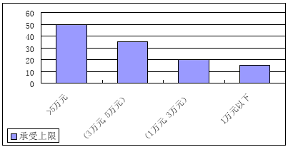 根据广电总局的调查显示,目前对数字电视接入的价格接受程度如下。年收入在4个区间内的被调查者上限为50元/月,并且受到节目内容的制约。对试验地区的数字电视价格接受程度比较低。
